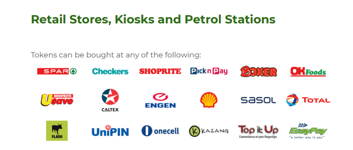 Go to any of the above displayed retail outlets with your meter number that you are to present to the cashier at the till or counter, You will pay for electricity and receive a slip with your 20 digit token number. Punch the number into your prepaid electricity meter.